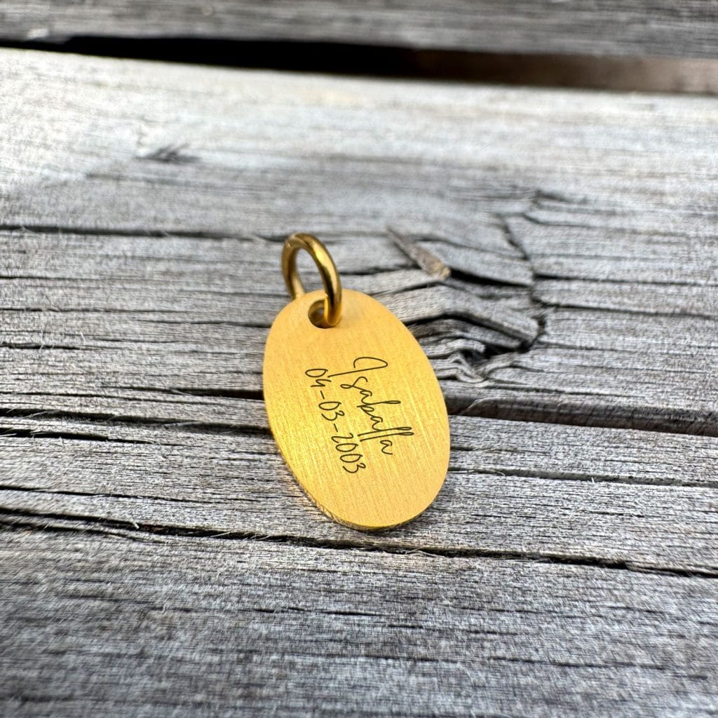 Ønsker du en anden bagside indgravering, så skriv til os på messenger eller instagram, så laver vi et udkast af dit smykke, så du kan se hvordan smykket kommer til at se ud, inden du køber.